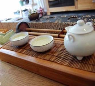 小小的茶幾,放了簡單的茶具。是不是很日式。 |