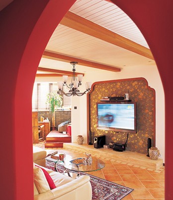 客廳電視墻的凹槽和曲線的外框極其簡單,卻將異域風格勾勒得十分精準。