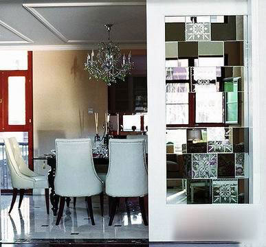 5.在櫥柜或吧臺(tái)柜門(mén)上安置鏡子。這里完全可以利用舊鏡子,可以做一整面鏡子,也可以切割成幾塊拼貼,各具風(fēng)格。