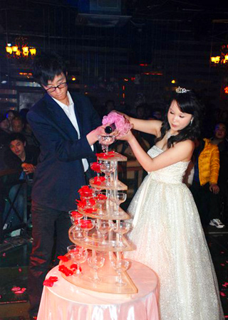 酒吧婚禮 在一些特殊的情況下,一些新人可能會舉辦兩場婚禮。比如,第一場是為了照顧雙方的老輩家長而舉行,形式上非常的正式。而第二場則完全是為了一幫好朋友們在一起再借題狂歡一回。人生中最幸福、最難忘的時刻就是婚禮大典,誰不愿意讓這種快樂加倍和延續(xù)呢?第二場婚禮新人們可以選擇一個別具風(fēng)情的小酒吧,在這種氣氛下朋友們都會很放松,唱歌、跳舞、做游戲,大家會玩得很盡興。在酒吧的入口處放置一個有新人卡通形象的簽到墻,讓來賓都簽上自己有創(chuàng)意的祝福吧。 適合人群:新人生性活潑同時身邊也有一群愛玩的朋友們 浪漫法寶:提前預(yù)訂一批特殊的紅酒——這些紅酒的瓶身標(biāo)簽是新人的結(jié)婚照、生產(chǎn)日期是新人的婚期、保質(zhì)期是天長地久。把紅酒送給到場的嘉賓,讓大家分享你們的喜悅。 浪漫指數(shù):★★★ 操作指數(shù):★★★★ |