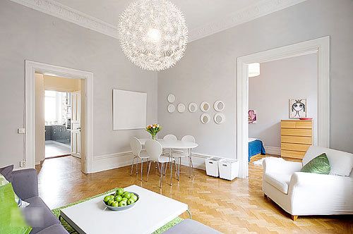 走進(jìn)家里。總是洋溢著春天的氣息,總體白色的墻壁外觀,搭配原木色波浪條紋的地板很陽光,而常常出現(xiàn)的亮點(diǎn)——綠色,吹來清新的自然風(fēng),這個(gè)小屋洋溢著滿滿的自然生機(jī)。