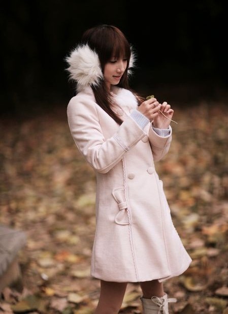 F 純美花邊蝴蝶結(jié)口袋帶毛領(lǐng)毛呢大衣 嘎嘎~~
