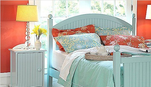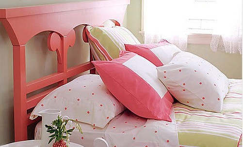 女孩房里用甜蜜的朱紅色搭配青澀的蘋果綠,營造出清純少女的氣息,朱紅色的床架搭配純白色的木質(zhì)床頭柜,將純凈美好的感覺演繹的恰到好處。