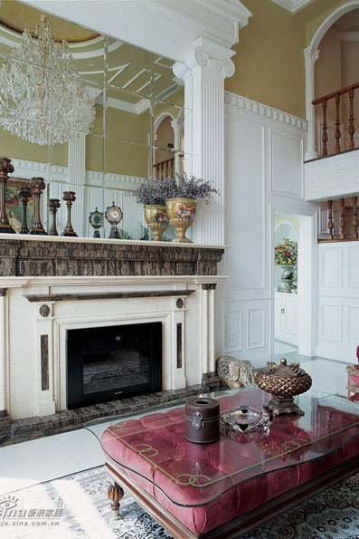 材質(zhì),于現(xiàn)代中賦予古蘊:常見的油畫、壁爐、水晶宮燈、蕾絲垂幔是新古典風格的點睛之筆。壁爐可以設(shè)計一個真的壁爐,也可以設(shè)計一個壁爐造型,輔以燈光,營造生活情調(diào)。水晶宮燈傳承著文化底蘊,靜靜泛著影影綽綽的燈光,朦朧、浪漫之感油然而生。羅馬古柱可使整體空間通透起來了,也顯得更加簡潔有力。