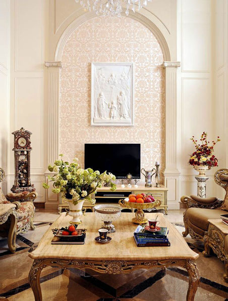 新古典主義的設(shè)計風格其實是經(jīng)過改良的古典主義風格。它從簡單到繁雜、從整體到局部,精雕細琢,鑲花刻金都給人一絲不茍的印象。一方面保留了材質(zhì)、色彩的大致風格,仍然可以很強烈地感受傳統(tǒng)的歷史痕跡與渾厚的文化底蘊,同時又摒棄了過于復(fù)雜的肌理和裝飾,簡化了線條。