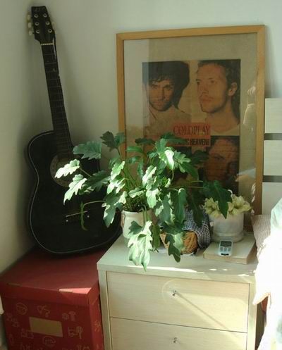 錢小戶型家居裝修 床頭柜,綠植15元,街頭小販手里買的,畫框20多 我們陽光燦爛的窗臺,蒲團25元,晚上如果興致好,BF會坐在上面彈吉他給我聽,不過他唱的歌實在不敢恭維。我想,當有一天我們買了自己的房子,家里一定會更加漂亮。