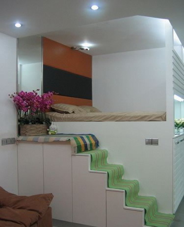 超贊袖珍小戶型 臥室與客廳一體,靈巧的樓梯設(shè)計(jì),小小空間兼具臥室與櫥柜功能,充分利用了空間。色彩的合理運(yùn)用,又不讓人感覺壓抑。