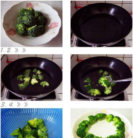 6.過涼的西蘭花擺在盤邊,形成一個(gè)花環(huán)