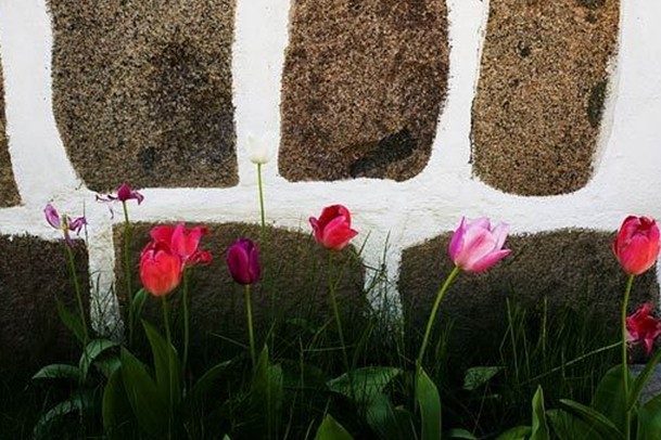 這片垂涎欲滴的郁金香盛開在墻角,微風(fēng)過處,送來縷縷清香,仿佛遠(yuǎn)處飄來渺茫的歌聲。
