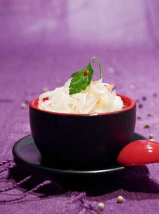 泡菜在歐洲風行盛廣,基礎(chǔ)材料大同小異,不外乎是卷心菜,糖,鹽,白醋和水,加入自己國家的特產(chǎn)香料,便可冠以當國特色之名。有歐洲陽臺之稱的六小國做泡菜最偷工減料,僅僅加了鹽和醋伴了兩下子,名頭永遠叫不響!匈牙利泡菜,則加入了小米辣,我們這樣的重慶妹兒永遠對他情有獨鐘。西班牙泡菜,加入了少量的番紅花粉,色澤金黃,在小吃吧里獨領(lǐng)風騷。而法國人則多少有些矯情,菜腌了后再加點調(diào)料,似乎就混入了法蘭西的浪漫血統(tǒng)。而在奧地利,這泡菜就像小學生被罰寫小字,千篇一律,盤盤必加。