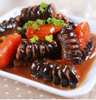 1.黃鱔請店家代為處理后,鍋中放水燒開放入黃鱔氽燙一下?lián)瞥鱿锤蓛舯砻骛ひ,切?-5CM左右長度的鱔段,用刀在背部均勻的劃幾刀備用 2.胡蘿卜切滾刀塊,大蔥切段,姜切片,蒜去皮;炒鍋中放油燒熱后放入姜片及大蒜瓣炒出香味,放入切好的鱔段迅速翻炒,調(diào)入1湯匙料酒 3.略微翻炒后,將胡蘿卜塊和大蔥一起放入鍋中,加入5湯匙紅燒醬油(醬油的量根據(jù)黃鱔的多少而定,不要放太多以免顏色過重),2湯匙白糖翻炒 4.加半碗水使水與黃鱔齊平,放入幾小段桂皮,蓋上鍋蓋,大火燒開轉(zhuǎn)小火燒20分鐘左右,最后去掉鍋蓋開大火將湯汁收至略濃稠撒上小蔥花即可 烹飪技巧
