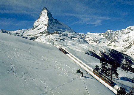 薩斯費(Saas-Fee) 薩斯費也是冬季體育運動的理想去處,擁有145公里的滑雪坡地,既使在夏季也能滑雪。這里禁止汽車通行,游客可以領(lǐng)略阿爾卑斯山的壯麗勝景,還可以進行各式各樣的戶外活動。薩斯費位于4,000米山脈的中部,那里有不同風格的旅館、餐廳及娛樂設施,讓游客在滑雪之余盡情享受。 |
