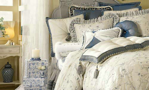 云層般的白色和天空般的蔚藍,讓這一季的床品透出清涼的舒適感