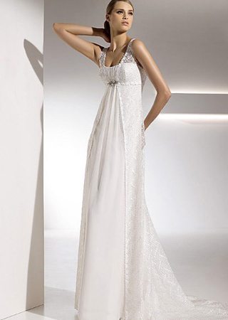 同樣的潔白色婚紗,簡(jiǎn)單明了的造型沒有一絲的多余,使得新娘看起來出水芙蓉般的出塵脫俗,而當(dāng)一件輕紗式的外罩輕輕地籠罩在了新娘的身上時(shí),卻給這份出塵之姿增添了一絲的嫵媚,整件外罩在腰肢中央被一個(gè)小小的銀色卡扣系住,讓新娘如同籠罩在了一片云霧之中,迷離且動(dòng)人。 |