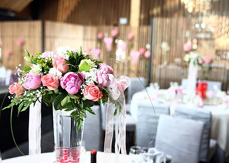 A:完美婚桌的構(gòu)成 ◆ 桌花:毋庸置疑是整個桌面布置的靈魂,起到至關(guān)重要的作用。 ◆ 席位卡:寫有來賓名字的席位卡可以方便來賓們尋找自己的座位。 ◆ 桌號牌:雖然是經(jīng)常讓人忽略的一部份,但是只要稍花心思,就能成為亮點。 ◆ 餐盤:小小的餐盤里可有不少講究,餐具擺放和口布折疊都大有學問。 B:桌花 作為整個桌面布置的重點,在這里特地把桌花單獨列出來進行說明。整體的款式主要取決于桌子的形狀、擺放的位置及需要營造的氣氛。因為花盆有普通式和高腳式,因此桌花也可以做成低式桌花和高式桌花。那怎樣來選擇合適的桌花呢? ◆ 桌花可以是獨立式也可以是組合式。 ◆ 主花材要選擇和整個會場布置用花相同或者相近的花材。 ◆ 桌花的高低一般取決于整個會場的層高和大小。 ◆ 顏色除了和整體布置協(xié)調(diào)之外,也不要忘記和桌布顏色的搭配。 |