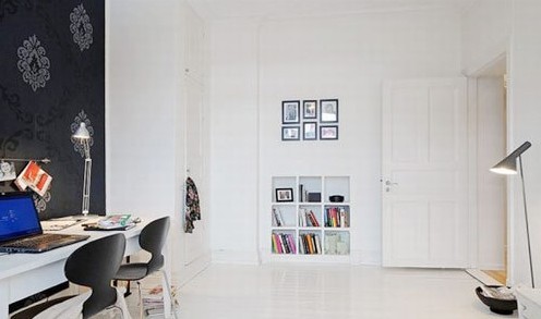 另一邊,經(jīng)典的設計再現(xiàn),魔方形的隔物架被很好的藏在了墻里,不但美觀、實用又不占任何地方。幾幅大小不一的裝飾畫,也是裝點臥室的很好選擇。