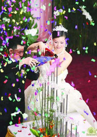 A:干杯 舉杯時不要太過豪放,杯子應(yīng)舉在面前斜斜的位置,干杯時的心情要抱著感謝來賓的祝福,但切忌樂極忘形,舉杯與別人打招呼時應(yīng)把玻璃杯舉至胸前。要單手拿著杯柄,而視線要掃向會場上的賓客。舉杯與賓客打招呼后,新郎新娘亦要有目光的交流,兩人再微笑地干杯,這樣能予人溫馨的感覺。 飲酒時要淺嘗,嘴巴只是輕輕地碰玻璃杯口,若貼得太緊會顯得不夠高貴。OK:拿酒杯時,手應(yīng)拿著杯柄,手指要拍齊,敬酒時或可用另一只手輕托杯底。 NG:拿杯時手指切勿向外伸,會另人有不整齊的感覺。 B:切蛋糕 切蛋糕是飲宴上重要的一環(huán),亦將會成為紀(jì)念寫真中的一張?zhí)卮笳掌,要留下動人的一刻,入刀后兩人的視線要一致,這樣才能達(dá)至同心協(xié)力,目標(biāo)一致的和諧感覺。 OK:新郎要將空余出來的左手放在新娘的腰肢上,這樣更如表現(xiàn)出兩人一體的感覺,同時要合拍的目光投向同一方向。 NG:千萬不要左顧右盼,新娘左手應(yīng)輔助式地握著刀柄,而不應(yīng)隨意擺放。 OK:握刀方法 新娘先伸出右手握著刀,新郎同樣伸出右手將新娘的手及握柄包著,最后新娘再伸出左手輔助式地握著刀柄,切蛋糕時的新娘牽引移動刀子,新郎暗中出刀。