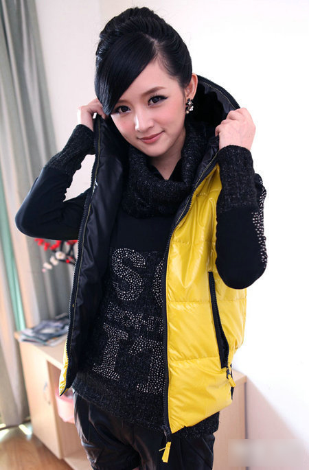 超大的帽子設計,為寒冷的冬季增添無限的溫暖氣息。撞色的雙層衣襟,增強視覺感,使搭配層次更為突出。 這款具有OL風格的馬甲,端莊淡雅,時尚得體。體現(xiàn)現(xiàn)代都市女性的美感。連帽的設計,更加溫暖時尚。