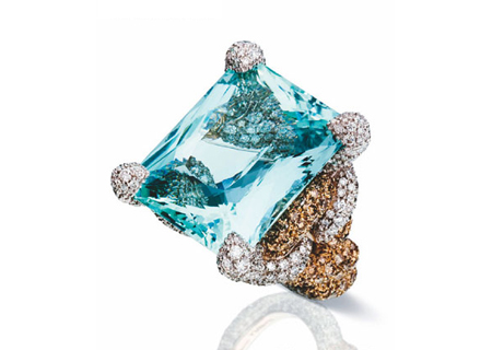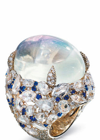 海藍寶石具有澄清的凈度,名稱來自拉丁文Aqua Marina,意為“ 海之水”。傳說中,海藍寶石是女海妖塞壬的寶藏之一,一直是水手以及航海者的護身符,凡是佩戴海藍寶石的人都會受到庇佑,保證婚姻幸福美滿。月光石的色澤生成