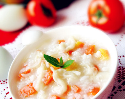 材料:粥底1鍋,蛤蜊肉100克,胡蘿卜1根,姜絲5克,蘆筍50克 做法: 1、粥底煮開,加入胡蘿卜煮10分鐘; 2、加入泡好的蛤蜊肉、姜絲繼續(xù)煮15分鐘; 3、蘆筍過熱水切丁用少量鹽拌一下,搭配胡蘿卜蛤蜊粥一起吃吧。 |