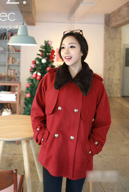 驚艷甜美的雙排扣呢子外套,可愛的毛毛領(lǐng)子 點綴,更突顯女生的甜美氣質(zhì),搭配一條小腳褲 就可以美美的出門了。