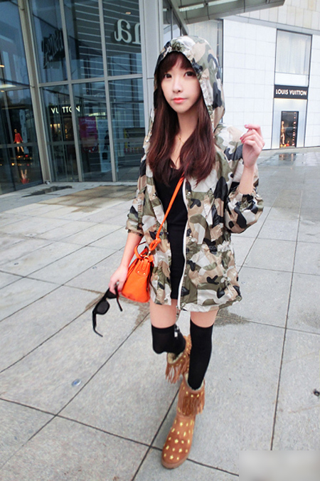 挑戰(zhàn)新鮮顏色的心跳感,會(huì)讓人上癮哦!今年大熱類似于APE的迷彩色,沖鋒衣樣式搭配迷彩色足夠吸引眼球,后背的人工刺繡,非常精致,腰部?jī)?nèi)里有拉繩可以收腰。讓人不得不迷戀上這樣極具個(gè)性獨(dú)特復(fù)古魅力。