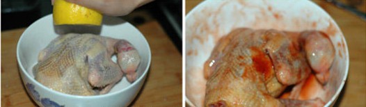 PS: 1、腌鴿子的時候可以在乳鴿身上扎些孔方便入味。一般我都會在里面扎,以免影響看相。腌的時候記得里外都要抹上腌料。 2、最后刷加了蜂蜜的汁水時多刷幾次,烤好的乳鴿顏色會更漂亮。 3、特別強(qiáng)調(diào)下,這方法只適合乳鴿,老鴿子肉這么烤了是沒法吃的。 |