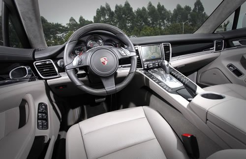 再來看看外觀,說實話,Panamera面世之初,我并不認為其好看,只是覺得有個性。但現(xiàn)在,我愈發(fā)覺得這種溜背造型的特別之處,它很容易在三箱車如云的車流中引起人們的注意。從外部看,與V8型號并無多大差別,因為選裝了20寸的Turbo式樣五輻輪圈,所以這部Panamera看上去很有氣勢。車尾的區(qū)別最明顯,V8車型的4出式圓形排氣尾管被改為雙出式方形排氣尾管,以此來區(qū)分,此外,車尾標上也僅有Panamera字樣標識。 打開車廂內(nèi),豪華感、做工和用料絲毫沒有因為是入門型號有有所降低,仍是一如既往的出色。這臺試駕車選裝有豪華的四區(qū)獨立控制空調(diào)系統(tǒng),以及四座椅加熱系統(tǒng),在廣州濕冷的冬季正好用得上,標配的BOSE音響系統(tǒng),音質(zhì)出色,無論是聽MP3,還是收廣播,都有不錯的效果。溫暖的車廂,舒適的座椅,再加上柔美的音樂,一切仿佛置身于豪華轎車中,而不是一輛以運動性見長的GT跑車。