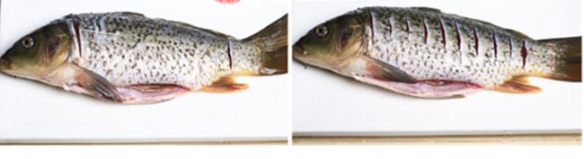 干燒鯉魚 原料:鯉魚、五花肉、紅椒、鮮香菇、冬筍、玉米、胡蘿卜、蔬菜粒、醋、醬油、大蒜、姜、蔥、青蒜、花椒、八角、鹽、胡椒粉、料酒、白糖、郫縣豆瓣醬。 做法: 1、鯉魚初加工后洗凈,在魚背頸部和尾部各切一刀,略微拍一拍從頸部取出鯉魚的腥線; 2、將鯉魚兩面各劃數(shù)刀,以鹽、胡椒粉、料酒腌入味;