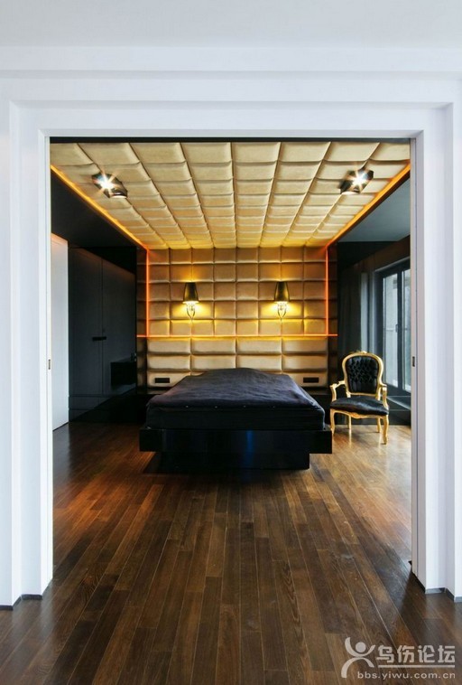 這家設計時尚的公寓靠近華沙市中心,由波蘭的HOLA Design擔當室內(nèi)設計。設計師將內(nèi)部裝飾設定為深色調(diào),搭配深褐色的木地板和明亮的紅色廚房。大紅色的廚房甚至成為了住宅的核心。 在華沙市中心的公寓里,這里可謂得天獨厚,不僅交通方便,而且還能一覽波蘭最標志性建筑——文化宮的美麗景色。在包含廚房的寬闊客廳里,設計師用火紅的顏色打造用餐區(qū)和廚房,是不是想讓用戶抱著滿腔熱情去打造每一頓美食呢?用餐區(qū)用玻璃墻跟廚房進行隔離,輕盈地把充滿油煙的廚房與快樂的餐廳分開。餐廳所使用的椅子是Stylhen出品的經(jīng)典設計:Egg椅和Panton椅,足以彰顯屋主的品味。 客廳那夾在黑色跟藍色碰撞的Stylhen茶幾和沙發(fā)中的,是HOLA專門設計打造的3D電視墻。透過電視墻的幽幽藍色燈光,仿佛是一個夢幻的圣地。浴室巧妙地放置在客廳的中央,由玻璃墻進行阻隔,并面對著文化宮,在沐浴的同時享受著窗外的美景,讓洗浴變成一件賞心悅目之事。浴室旁的躺椅同樣是出自Stylhen的Diamond椅?磥碓O計師是Stylhen的忠實粉絲也說不定。 臥室通過雙滑門設計跟生活區(qū)分開,里面有一個隱蔽的入口通向更衣室。由于臥室是放松休息的地方,所以設計師也讓其變得獨特。臥室在整個公寓里,采取了一種截然不同的風格。這里充滿了各種金色輝煌的魅力元素,金色跟典雅的黑色碰撞出火花,并跟外面白色的空間產(chǎn)生鮮明的對比。推開門進去,感覺是走進了一處奢華的皇宮寢室。 |