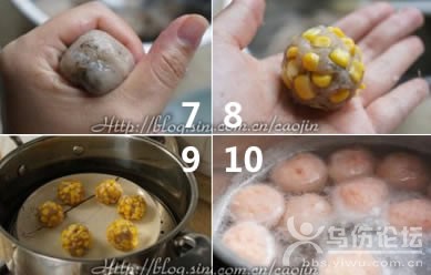 食材: 用料1 鮮蝦 300g(去皮后)、玉米粒 適量、馬鈴薯淀粉 30g(可用玉米淀粉,木薯粉等)、味霖 15g(可用料酒或米酒等)、蛋白 約30g、鹽 2-3g、白胡椒粉 約1g不到、姜汁 少許(也可以用切細的姜末) 用料2 (蝦球醬汁) 蠔油 一小勺、醬油 2大勺、水 2大勺、糖 適量、番茄醬 少許 1.鮮蝦洗凈,略擦干后,用牙簽從第蝦殼二節(jié)處挑出泥線(先用牙簽尖端在第二節(jié)縫隙處劃開蝦肉,再挑出泥線即可,這里是泥線最韌的地方,比較容易挑) 2.再去頭去殼,剝出蝦肉。注意分量中的蝦肉是剝皮后的哦 3.將蝦肉剁成泥,越碎約細越好,做出來的蝦球越好看和帶彈性 4.將調料與蝦肉一起攪拌,打出蝦膠。這一步也可以用筷子沿著一個方向一直攪拌 5.直到蝦肉變得黏黏的,有點透明起膠的感覺 6.將玉米粒,擦干,滾上一些淀粉(我用的是冷凍玉米粒,解凍后有水。所以要擦凈水) 7.挖一勺蝦肉,用虎口擠出蝦球。手上沾水會比較不容易粘哦 8.再滾上玉米粒,玉米要確實嵌入蝦肉,才不容易掉 9.擺入蒸鍋,開鍋后大約蒸8-10分鐘。再燜一下再打開哦 10.如果不做玉米蝦球,就是普通的蝦球,可以直接水煮就可以了。煮的時候水不要滾沸,否則蝦球容易散掉而且鮮味也會流失掉哦。煮好后的蝦球,可以冷凍保存,隨時取用 小貼士 醬汁的做法也很簡單咯,所有材料入小湯鍋煮沸,再倒入淀粉水勾芡即可。湯汁是略濃稠滴。 做好之后趁熱淋在蝦球上即可~~~~醬汁除了給蝦球提色還可以提味~口味因個人喜好調整也可。 |