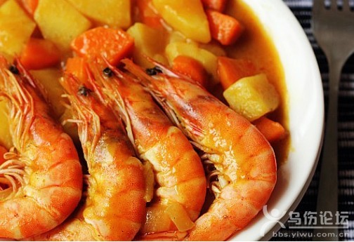 食材:鮮蝦、胡蘿卜、土豆、洋蔥、鹽、白酒、胡椒粉、咖喱膏、酸奶 1.鮮蝦清洗干凈,剪去蝦須、挑去蝦線,加入適量鹽、白酒、胡椒粉腌制半小時(shí) 2.胡蘿卜、土豆和洋蔥分別切塊,鍋里放一大勺油,油熱后將洋蔥下鍋煸炒,等洋蔥爆香后,將胡蘿卜和土豆一起下鍋煸炒,加入少許鹽,加入開水沒過蔬菜煮10分鐘 3.加入適量的咖喱膏(隨個(gè)人口味),然后轉(zhuǎn)小火慢燉,等到土豆和胡蘿卜燉軟、湯汁變少,加入適量酸奶,接著再燉一會(huì) 4.將腌制好的鮮蝦放入鍋中,翻炒均勻,5分鐘后即可關(guān)火 小貼士 1、鮮蝦要提前腌制,這樣才入味,加入白酒和胡椒粉起到去腥提鮮的作用 2、油熱后先下洋蔥煸炒,這樣洋蔥的香氣充分釋放出來,做出的咖喱口感好。燉煮咖喱的時(shí)候要放少許酸奶,這樣咖喱的口感更柔和、更美味、更香醇 3、蝦一定要最后放,因?yàn)槲r很容易熟 |