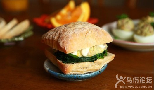 食材:爵巴塔面包 2個(gè)、菠菜 2棵、牛油果 1/2個(gè)、雞蛋 3個(gè)、吞拿魚罐頭(浸油) 90克、甜玉米粒 30克、鹽 1小撮、黑胡椒 1小撮、歐芹 1小撮、蛋黃醬 1/2大匙 1.所有材料。 2.牛油果對(duì)半切開。 3.將皮去除。 4.果肉放在容器中,用勺子或其他器具碾碎成醬。 5.將碾好的牛油果,吞拿魚罐頭(瀝出油份),甜玉米粒和蛋黃醬混合在一起。 6.加入鹽和黑胡椒,攪拌均勻。 7.雞蛋煮8分鐘,撈出,用涼水浸泡,瀝干水分,備用。 8.雞蛋剝皮,切半。 9.將蛋黃摳出。 10.將蛋黃加入沙拉中,碾碎,攪拌均勻。 11.將爵巴塔面包橫向剖成兩半。 12.將菠菜焯水,撈出,過(guò)冷水,瀝干水分,備用。 13.將擠干水分的菠菜放在爵巴塔面包上。 14.頂層鋪上一層牛油果吞拿魚沙拉。 15.擠上適量的蛋黃醬,然后蓋上另外一片爵巴塔面包即可。 小貼士 爵巴塔面包如果買不到的話,請(qǐng)用任何你喜歡的面包來(lái)代替。同理,你可以用三文魚代替吞拿魚。 |