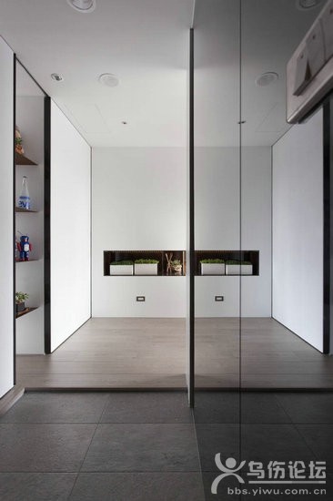 設計重點:玄關端景 編輯點評:電視墻面延伸而出的造型機柜,透過精密計算光影投射間,虛實成相交打造玄關倒影及端景。