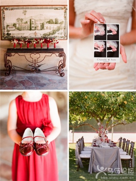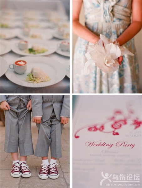 說(shuō)到夏季戶外主題婚禮,大家一定想到明媚的陽(yáng)光,碧綠的草地,色彩鮮艷的花朵,以及清新淡雅的藍(lán)色,粉色,白色,黃色。誰(shuí)能想到,在你的夏季戶外主題婚禮布置中加上一抹濃烈的紅色,卻會(huì)為你的主題婚禮增添別樣風(fēng)情。 夏季戶外主題婚禮的主題色不能太多,以白色,銀色,淺灰為主,其實(shí)紅色才是真正的主題!但是有讓人以為紅色僅僅是作為婚禮上一種色彩的點(diǎn)綴,布置的巧妙在于它無(wú)處不在,新娘的婚鞋,手捧花,婚禮蛋糕,桌花,卻并且不顯突兀,這便是畫龍點(diǎn)睛的作用。 利用走廊上的復(fù)古長(zhǎng)桌,擺上伴娘們的捧花,婚宴主桌銀灰色緞面桌布在夏天的戶外草坪上更顯淡雅。 賓客桌為綢緞錦蘭,與紅色的搭配也恰到好處。 并不需要過(guò)多裝飾,在儀式入口一邊放一顆花樹,往草坪鋪上紅色鮮花花瓣,其他依舊以白色為主,在夏季的暖陽(yáng)中,靜待新人的入場(chǎng)。 如果你還有晚宴,那在舞臺(tái)邊放上兩個(gè)大紅絲絨沙發(fā)吧,它能幫助你把氣氛搞的更加熱烈。 男童花童腳下的紅色休閑鞋,請(qǐng)柬也為紅色字體。 |