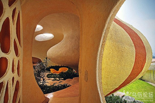 這座小屋正面光滑,有一面巨大的鑲嵌著彩色玻璃的墻,陽(yáng)光透過這些玻璃進(jìn)入室內(nèi),產(chǎn)生一種五彩繽紛的效果。哈維爾在建造小屋時(shí)受到了建筑師安東尼·高第(Antoni Gaudi)和弗蘭克˙勞埃德˙賴特(Frank Lloyd Wright)作品的啟發(fā),在小屋內(nèi)種植了植物,并修建了螺旋梯。 Arquitectura Organica工作室說,他們希望這座小房子能讓居住者感覺身處于蝸牛殼之中,用哈維爾的話來說,居住者感覺自己像軟體動(dòng)物一樣從一個(gè)房間爬到另一個(gè)房間。 |