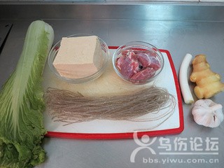 1 所需食材如圖所示,其中排骨可替換成少量瘦肉或不加都可以,我是添加幾塊形狀不完美的排骨余料來(lái)增味。 2 白菜摘開(kāi)浸泡水中、洗凈。 3 粉條熱水焯至約七成熟,里面有白芯,用時(shí)大概3分鐘。 4 白菜手撕成塊,豆腐切小塊,排骨用醬油、料酒、鹽腌好。下鍋前的食材已準(zhǔn)備完畢。 5 油熱后,加蔥姜蒜爆鍋,炒制排骨。 6 加水約800毫升,即一瓶多半瓶礦泉水的量,中火燉十多分鐘。 7 湯下去多半時(shí),加入白菜和粉條,中火燉六七分鐘。 8 加入豆腐,翻幾下,可添加少量鹽和味精,大概2分鐘后即可出鍋。 9 鮮嫩爽滑的白菜燉豆腐就這樣大功告成了。