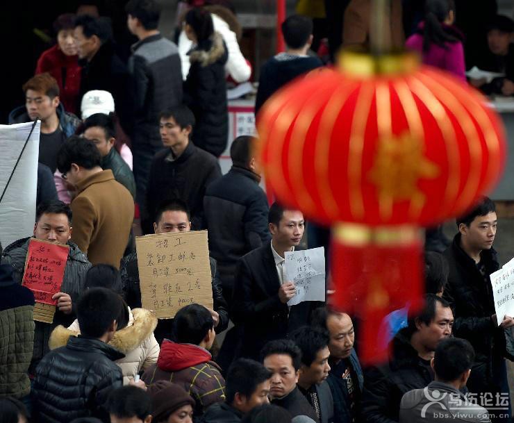 : 2月26日,多家用工企業(yè)代表在義烏人力資源市場內(nèi)舉牌招人。 當(dāng)日是正月初八,用工企業(yè)代表和外來務(wù)工人員等上千人齊聚浙江義烏人力資源市場招工或求職