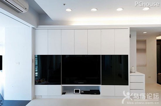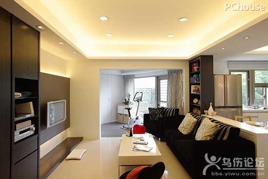 設(shè)計重點:開放式空間 編輯點評:設(shè)計師不浪費空間的優(yōu)勢,以屋主喜愛的開放式手法規(guī)劃公共空間,線條明朗的家具,佐以柔和的光影,簡單卻有質(zhì)感。響應(yīng)屋主喜愛看DVD的需求,左側(cè)的柜子設(shè)計了人性化的收納動線,便于收納的同時保證了空間的整潔美觀。