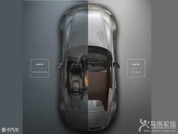 外觀(guān)方面,從預(yù)告圖來(lái),這兩款概念車(chē)均以現(xiàn)款MX-5為基礎(chǔ)打造,并且這兩款車(chē)型均采用了敞篷式的結(jié)構(gòu)。MX-5 Spyder概念車(chē)采用了軟頂敞篷設(shè)計(jì),而MX-5 Speedster概念車(chē)則應(yīng)該是硬頂式設(shè)計(jì)。馬自達(dá)官方透露,兩款車(chē)型的整車(chē)質(zhì)量均在現(xiàn)款MX-5的基礎(chǔ)上(1057kg)顯著減少。