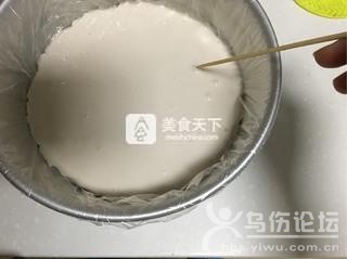 攪拌時面糊里邊又有些粗糙,然后稍后又恢復表面順滑的原狀,這樣程度就可以了,水量酌情添加