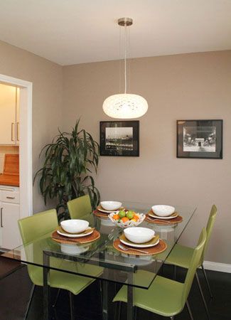 餐廳設(shè)計(jì)時(shí)尚溫馨,暖色調(diào)的整體空間,搭配草綠色的餐椅,對(duì)比中演繹時(shí)尚風(fēng)情。