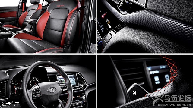 內(nèi)飾方面,新車的內(nèi)飾整體設(shè)計與普通版伊蘭特基本一致,只是為了凸顯其運動的定位,在細節(jié)上經(jīng)過一些調(diào)整。新車采用了運動型平底方向盤,而且采用紅線縫制。中控面板部分使用碳纖維材質(zhì),值得一提的是,新車還采用了黑紅搭配的皮質(zhì)座椅,“Sport”標識是其身份的象征。