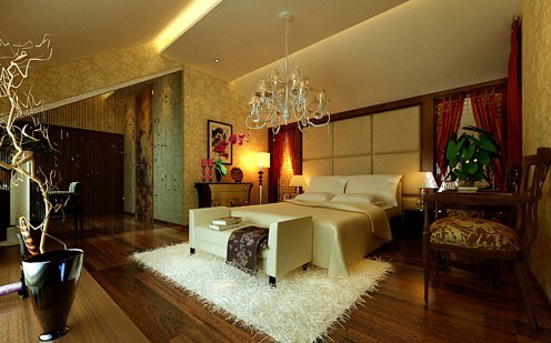 在這個臥室設(shè)計中,用了很多的暖光和軟包,叫整個空間更加的溫馨舒適,加上一個水晶吊頂?shù)狞c綴更能體現(xiàn)出主人的個人品味。