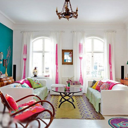 一面藍色的背景墻延續(xù)了整個家的格調(diào),客廳里各種色彩的跳躍搭配讓空間本來的缺憾反倒成為恰到好處的裝飾。