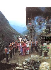 四川西陽、秀山一帶的土家族舉行婚禮時,要在迎親隊伍中選一位比新郎年齡小的小伙子代表新郎當(dāng)"摸米"。偷聽新娘哭嫁的內(nèi)容和給女青年們分發(fā)禮物。在夜晚哭嫁休息時,女方的一些年輕姑娘便三三兩兩地找"摸米"要哭嫁粑粑,并借口哭嫁粑粑給少了,紛紛往"摸米"臉上抹鍋煙子。"摸米"怕被抹黑臉,只好設(shè)法躲藏。姑娘們也不輕易地放過他,到處尋找,凡見到男方前來迎親的小伙子,便都將鍋煙往他臉上抹。到天亮?xí)r,迎親隊伍中好多不是"摸米"的小伙子,臉上都有了黑。據(jù)說,被摸黑的男青年越多,被女方姑娘愛上的青年就越多,新郎新娘就會更加相親相愛,白頭到老。 |