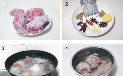 原料:牛鍵子肉、八角、花椒、小茴香、丁香、桂皮、香葉、五香粉、冰糖、干紅辣椒、蒜、姜、老抽、生抽、鹽。 做法: 1、材料:牛鍵子肉(以前腱子肉為佳,有一點(diǎn)筋,吃起來(lái)有咬勁。我這個(gè)不是); 2、調(diào)料:八角、花椒、小茴香、丁香、桂皮、香葉、五香粉、冰糖、干紅辣椒、蒜、姜、老抽、生抽、鹽; 3、鍋中倒入清水,大火加熱后,將牛肉放入,在開(kāi)水中略煮; 4、撈出牛肉,冷水浸泡,讓牛肉緊縮; 5、免火再煮鍋中放入適量清水和牛肉,依次放入香料、蔥姜、生抽、老抽,糖、五香粉; 6、用大火煮至鍋內(nèi)水沸騰; 7、加入適量豆瓣醬; 8、沸騰后繼續(xù)煮約5分鐘(整個(gè)煮的過(guò)程約為15分鐘,大家可以看見(jiàn)鍋底的鑄鐵聚熱環(huán)變的通紅)。蓋上鍋蓋,放入愛(ài)多幫免火再煮鍋的外鍋中,扣上鎖扣,該干嘛該干嘛去,不用管它了,非常的方便。一覺(jué)醒來(lái)后,女兒的早餐就吃上香噴噴的牛肉嘍。