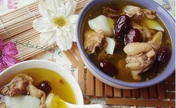 2、放沙鍋中,加清水適量,文火煨至雞肉爛熟后,去藥包,納入蔥、椒、食鹽、味精等調(diào)味,煮沸,佐餐服食。