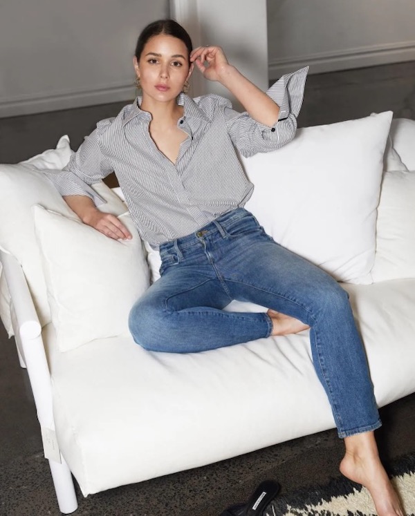 圖片來源:ins@kidjess 大眼睛、長(zhǎng)睫毛很像一個(gè)洋娃娃。對(duì)鏡自拍最愛用可愛少女心的濾鏡,是不是像極了愛自拍的你。發(fā)色也是十分搶眼,如果你也正在考慮染發(fā),說不定能get到一些新的靈感。 圖片來源:ins@kidjess 一字肩T恤搭配高腰牛仔褲,上短下長(zhǎng)起到拉長(zhǎng)下半身的效果。短款T恤能起到修飾腰部線條的作用。 圖片來源:ins@kidjess 很多人認(rèn)為微胖女生穿得越寬松越好,JESS告訴你:不需要遮遮掩掩,自信的穿短裙,你一樣也很美。在選擇短裙時(shí)建議選擇材質(zhì)硬一些的,避免裙子貼在身上顯得胯寬。 圖片來源:ins@kidjess 短裙與厚底鞋的組合,活力又清爽。黑色襪子剛剛好包裹腳腕,視覺上拉長(zhǎng)腿型,腳腕粗的妹子可以參考哦。 圖片來源:ins@kidjess 天氣涼爽時(shí),搭配一件明黃色的小外套,好氣色立刻呈現(xiàn),連心情也會(huì)變得爽朗起來。 圖片來源:ins@kidjess 看JESS的INS你會(huì)發(fā)現(xiàn)她穿搭的單品要么是簡(jiǎn)單的T恤,要么是衛(wèi)衣、小線衫,都是大家衣櫥里最常見的款式,所以對(duì)于喜歡甜美風(fēng)的小仙女們來說可借鑒性還是蠻高的。 圖片來源:ins@kidjess 誰(shuí)說胖女孩只能穿黑白灰?JESS用行動(dòng)告訴你,用對(duì)了色彩,「水果女孩」也可以很出挑,而且一點(diǎn)都不顯胖。 2.Tonya Smith ins id:themoptop 風(fēng)格:森女、治愈系 關(guān)鍵詞:梨型身材、大腿粗、胯寬 美國(guó)波特蘭博主Tonya Smith,ins畫風(fēng)特別好看,明明是個(gè)子不高腿也不細(xì),但每張照片的構(gòu)圖、濾鏡、穿搭、姿勢(shì),都是教科書級(jí)別的。(拍照小心機(jī)可以學(xué)起來)同時(shí)Tonya Smith的褲裝LOOK會(huì)讓你摒棄掉胖妹穿褲子更顯胖的觀點(diǎn)。 圖片來源:ins@themoptop 腰線就是微胖女孩的生命線!一定要高腰線高腰線高腰線!Tonya的身材就是生活中常見的梨形人,所以幾乎所有褲裝搭配中她都選擇了高腰褲。 圖片來源:ins@themoptop 另外一定要對(duì)緊身褲Say No!寬松的褲腿是最藏肉的版型。像直筒褲或者微喇褲都很適合腿粗的妹子,搭配同色系小西裝看著極度舒適。 圖片來源:ins@themoptop Tonya Smith 在ins上分享的基本都是她的日常穿搭,而且很多拍照姿勢(shì)和構(gòu)圖也很值得借鑒。碎花短裙加上切爾西靴是超顯腿長(zhǎng)的利器。 圖片來源:ins@themoptop 怎樣穿裙子不顯胯寬?只要在視覺上提高腰線即可。把吊帶塞進(jìn)高腰裙里,你也可以得到完美的身材比例。 圖片來源:ins@themoptop 連衣裙怎么穿?別急,像Tonya Smith這樣將裙帶系在高于真正腰的位置,腿長(zhǎng)1米8的氣場(chǎng)就出來了。 圖片來源:ins@themoptop 泡泡袖能很好的遮蓋手臂上的贅肉,而露出鎖骨的大領(lǐng)衣服能讓你看上去更顯瘦。 圖片來源:ins@themoptop 而大V領(lǐng)能夠拉長(zhǎng)頸部線條,弱化圓臉。 圖片來源:ins@themoptop 連衣長(zhǎng)裙是腿粗妹子的遮肉神器,建議選擇垂感強(qiáng)一些的,太硬的線條會(huì)在視覺上看得臃腫。如果你的腳踝瘦,那長(zhǎng)裙的長(zhǎng)短一定要?jiǎng)倓偤寐冻瞿_踝最細(xì)的部分。 圖片來源:ins@themoptop 如果腳踝較粗,可以像Tonya Smith這樣搭配一雙及腕的靴子,而裙子的長(zhǎng)度以剛剛好遮住小腿肚子最粗的地方為最優(yōu)。 圖片來源:ins@themoptop 有點(diǎn)懶散,有點(diǎn)優(yōu)雅,Tonya Smith的穿搭更像是鄰家大姐姐,消無(wú)聲息地潛入心靈。 3. Sara Donaldson ins id:@harperandharley 風(fēng)格:御姐范 關(guān)鍵詞:手臂粗、拜拜肉 Sara Donaldson是一位澳大利亞的時(shí)尚博主,她鐘愛極簡(jiǎn)主義,日常穿搭以黑白灰三色為主,經(jīng)典的法式優(yōu)雅御姐路線。 圖片來源:ins@harperandharley 由于她上半身比較壯,尤其是手臂上的拜拜肉很明顯,所以她穿衣的關(guān)鍵詞都是襯衫、西裝這些,各式各樣的襯衫可以占據(jù)她的半壁衣櫥。 圖片來源:ins@harperandharley 像這樣豎條紋的襯衫加上兩袖抽帶設(shè)計(jì),時(shí)尚又顯瘦。重要的是,襯衫一定要塞入褲腰拉高腰線。