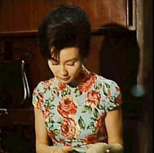 紅薔薇花團爛漫的綻放在旗袍上,女主角的美就像春天綻放的花,魅力襲人。